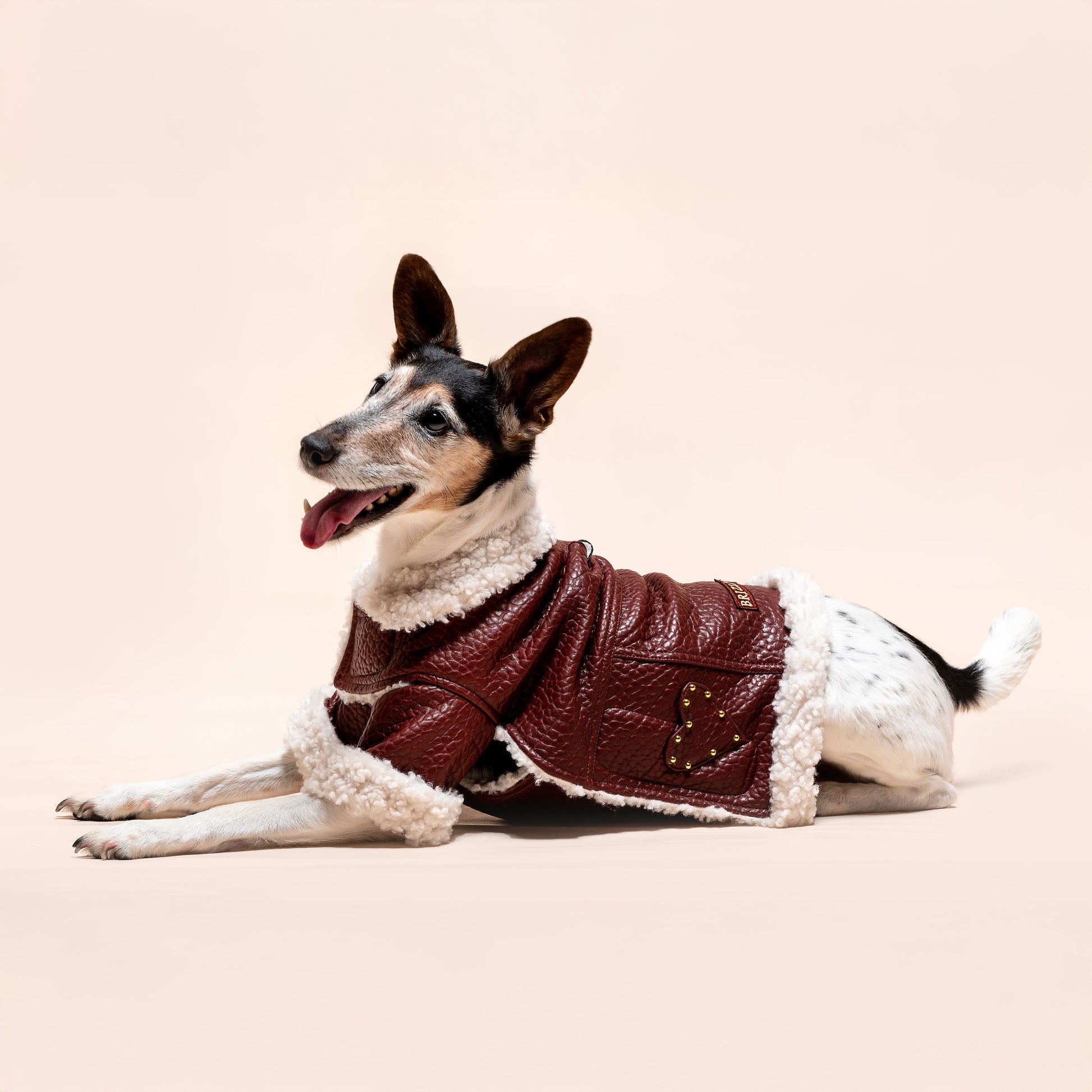 The WILD CHERRY collection’s bold new arrival — the Chearry Cherry Jacket — brings the spirit of classic biker fashion into the world of dog couture. The deep burgundy, subtly textured fabric paired with a contrasting soft faux-fur lining radiates both strength and elegance, while keeping your pup warm and cozy on chilly days.