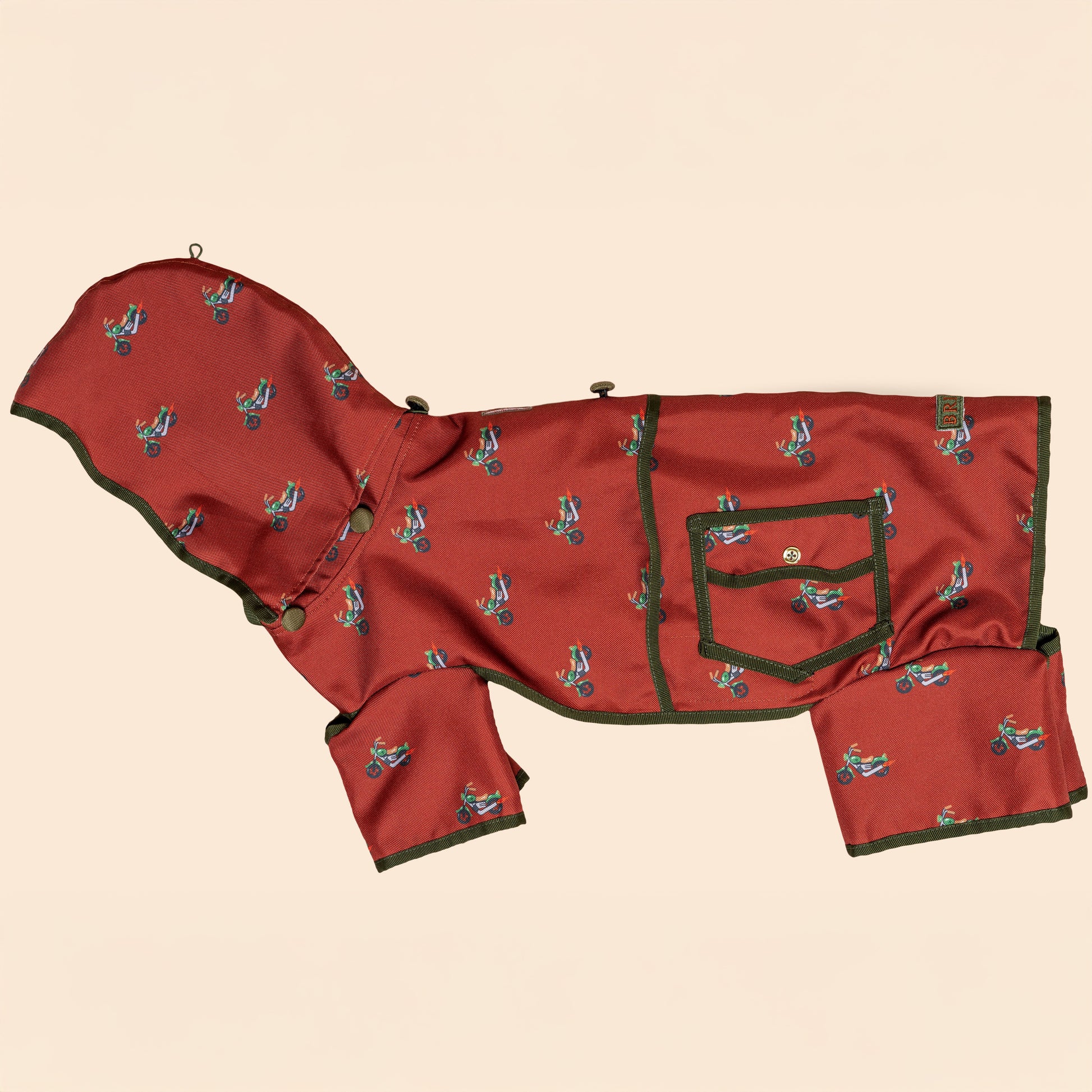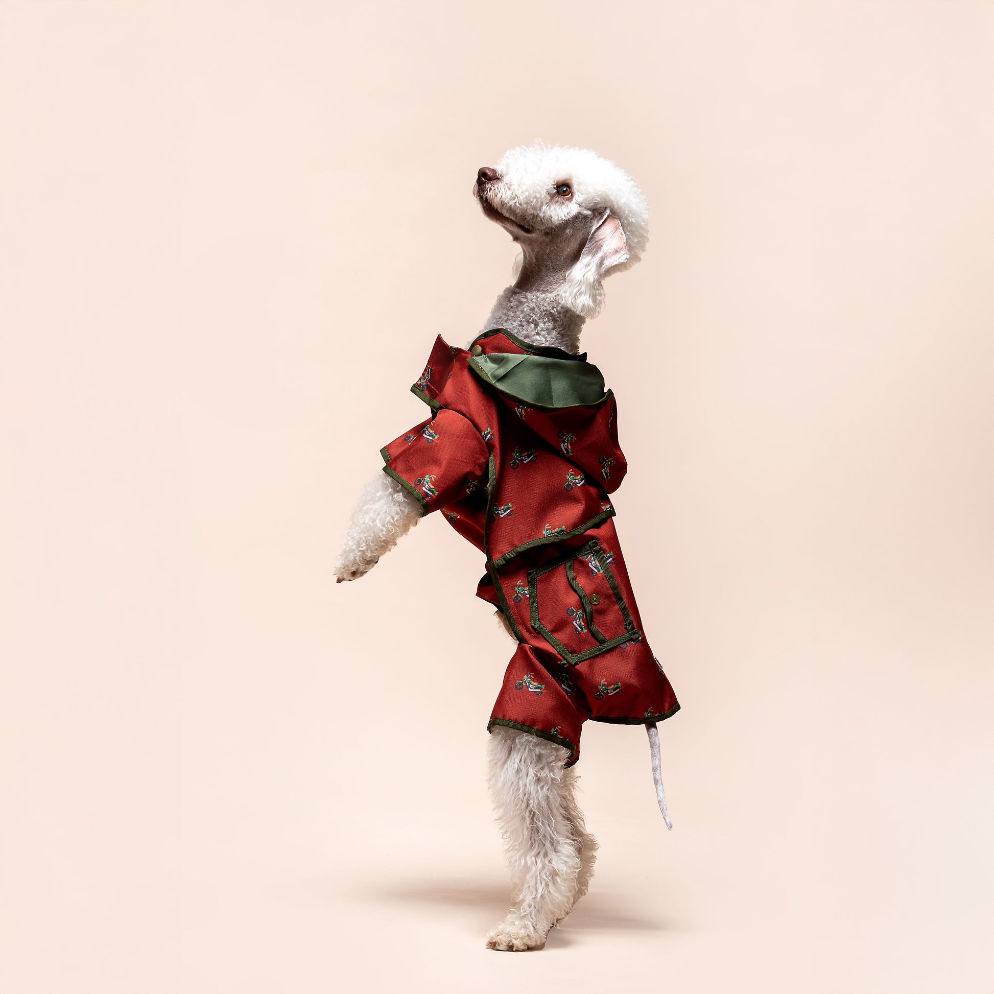 Crafted from water-repellent fabric, the Harley ensures your pup stays dry and comfortable even during sudden rain showers. The full-body cut not only accentuates your dog’s elegant silhouette but also provides extra protection on cooler, windy days. With its dynamic energy and playful charm, the Harley turns every walk into an adventure.